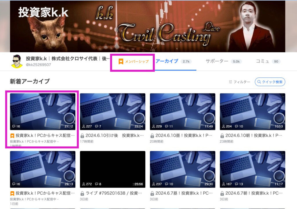 ライブ配信のツイキャス内の同一アカウントで「投資家k.kモーニング解説🎙」という別サービスも運営しております。